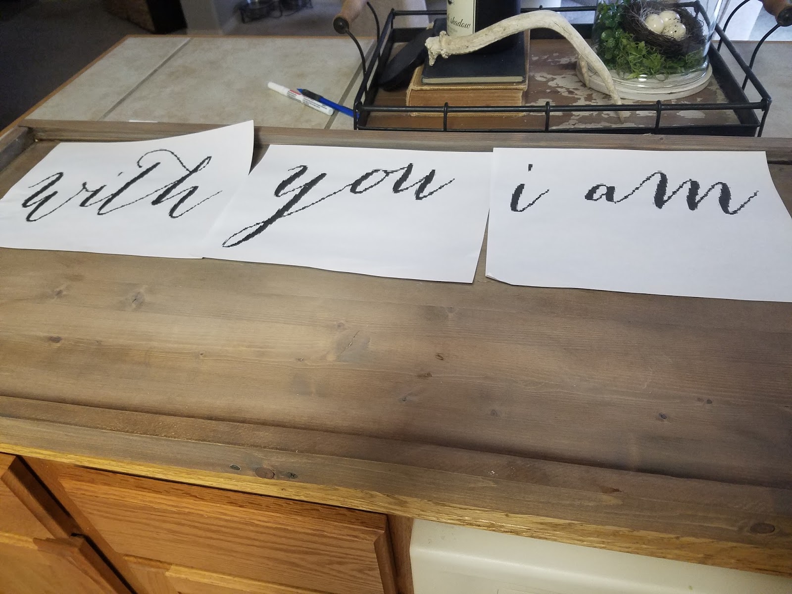 Now, take a pencil or pen and trace the quote pushing down hard to create and indent in the wood. It should look like this.